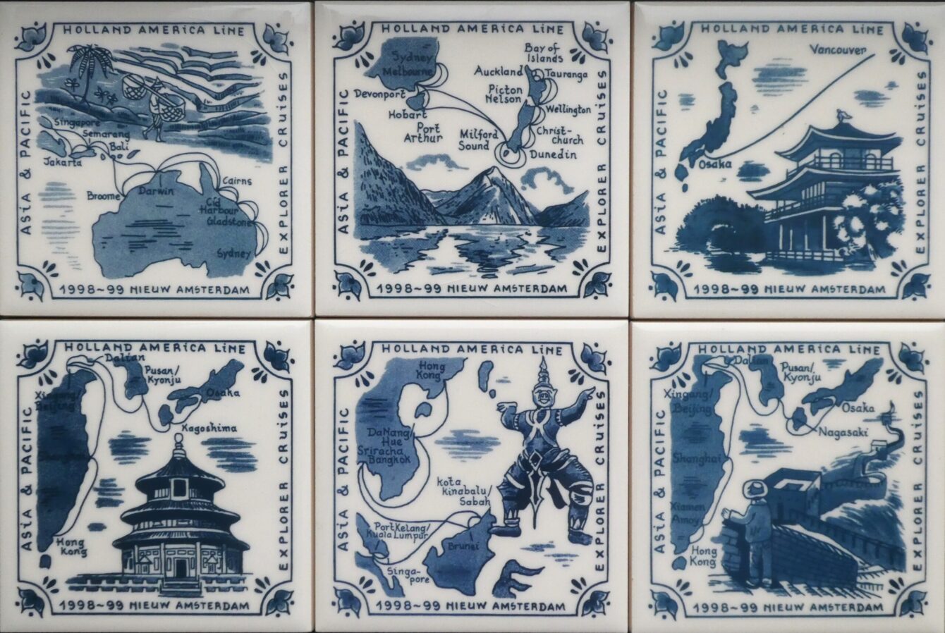 De zes tegels die zijn uitgegeven tijdens de Asia & Pacific Cruises welke de Nieuw Amsterdam III (1983-2003) in 1998/99 maakte, sieren de homepagina in deze eerste update van 2026. De tegels zijn te vinden in het menu Grand Voyages en zijn een link naar een nieuw ontdekte tegel in deze serie. Zie het menu News.